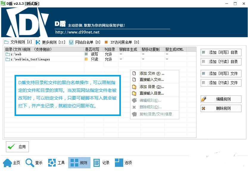 『目录限制』有效防止入侵者通过脚本上传危险程序或代码,让服务运行于安全状态。