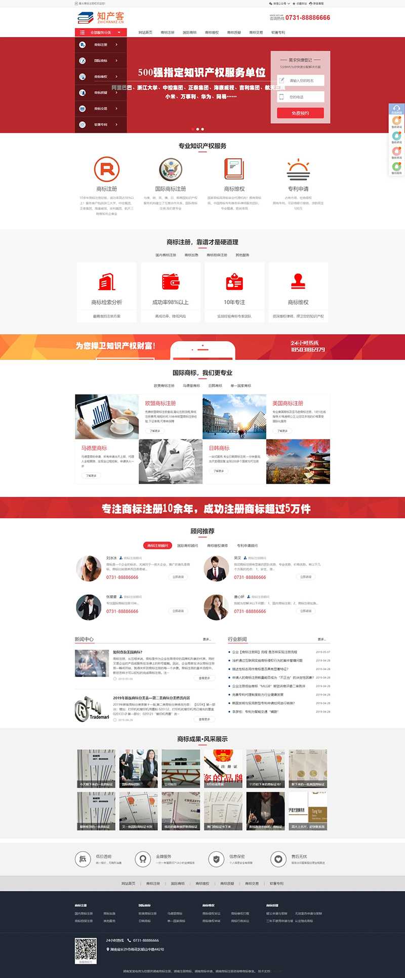 PbootCMS红色知识产权商标专利服务网站模板整站源码,本模板只有PC端模板,适合知识产权、商标专利类等企业使用,后台栏目字段有进行修改,建议使用整站源码。